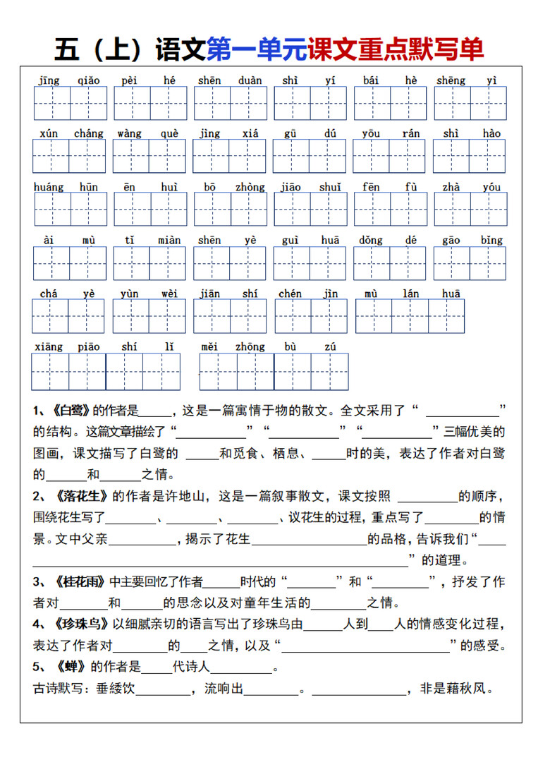 2025年新版五年级语文知识点总结(全册高频考点汇总)